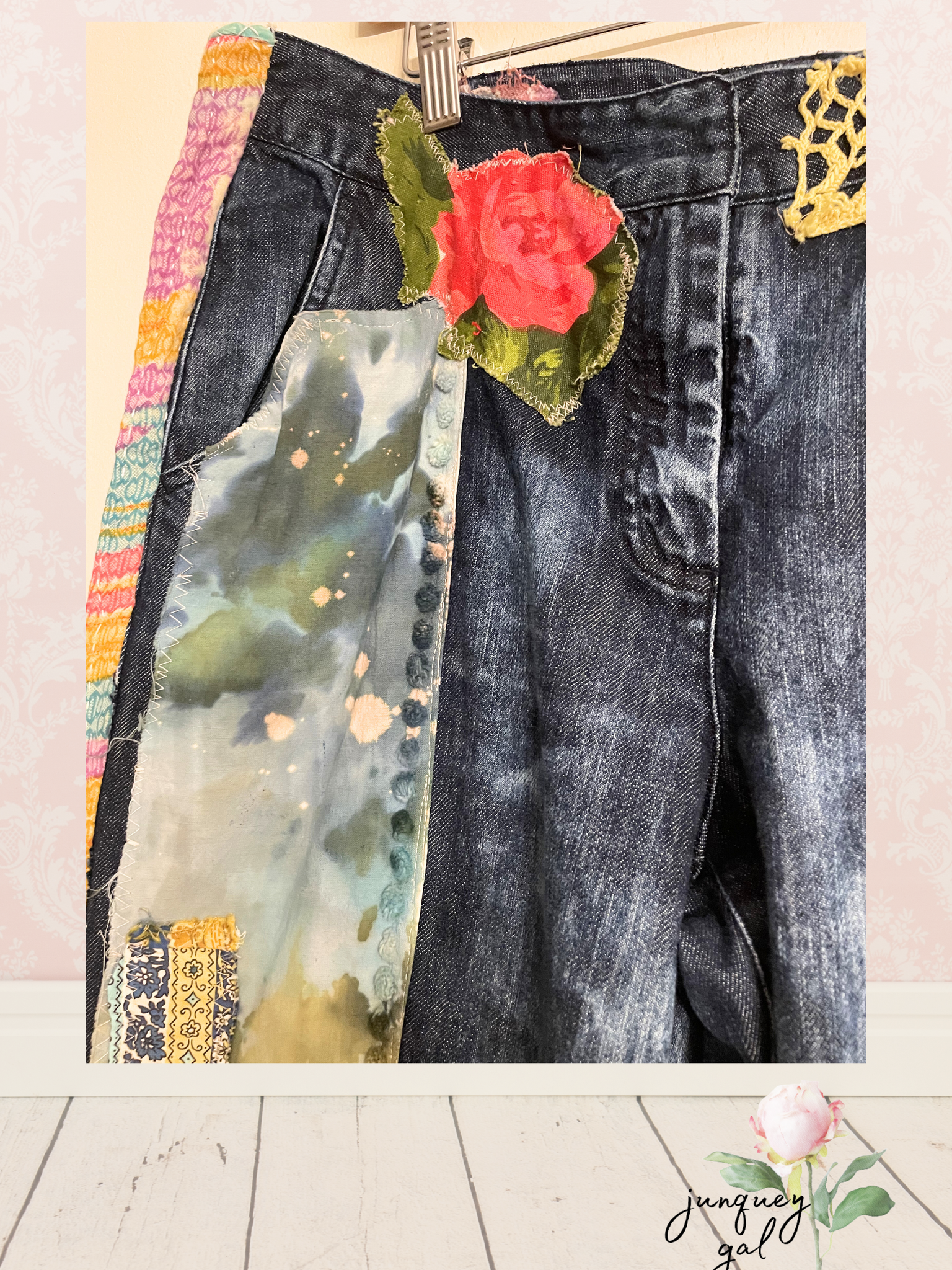 All items are created from vintage & upcycled materials for a truly one-of-a-kind boutique worthy item in your wardrobe.